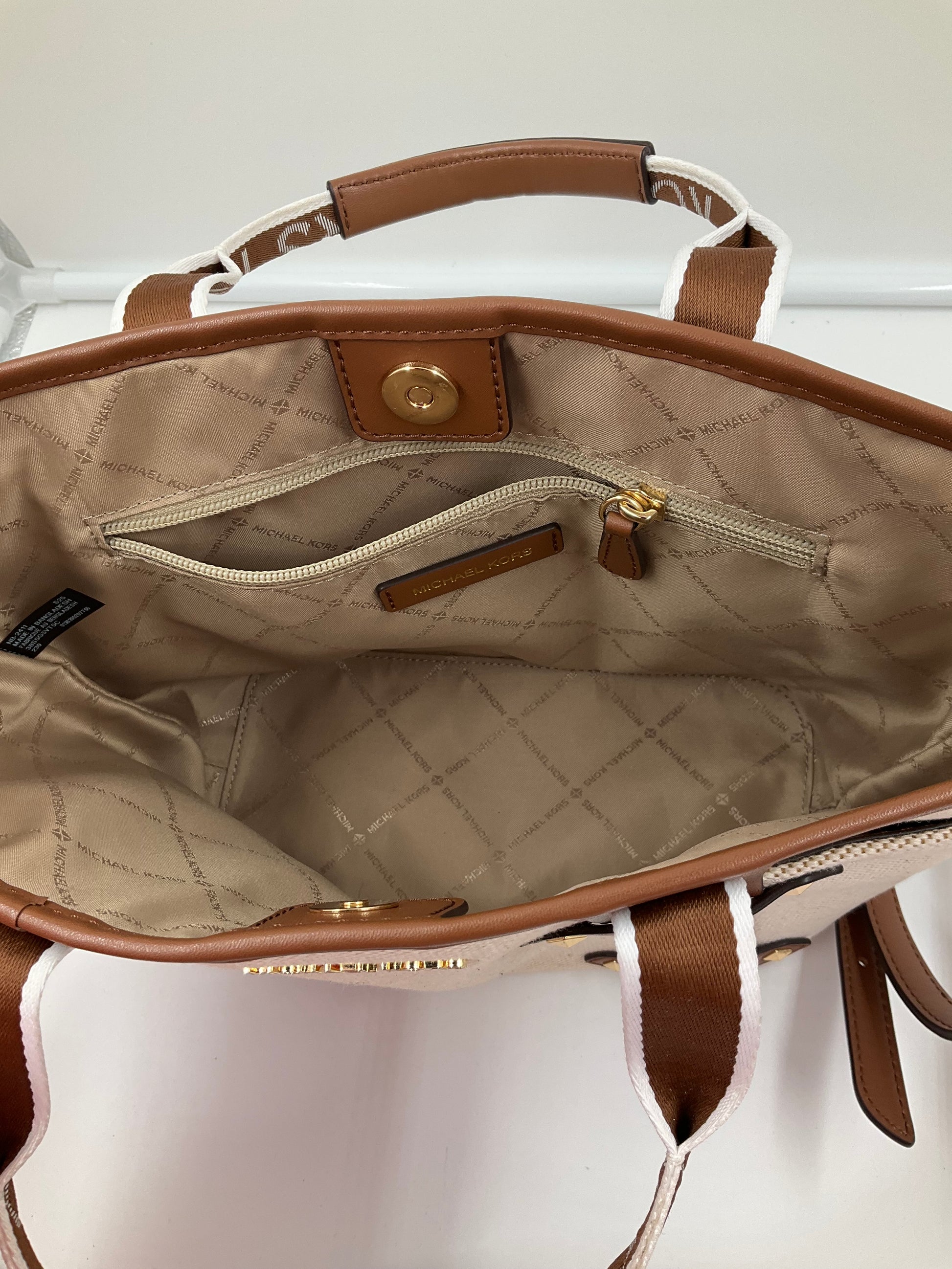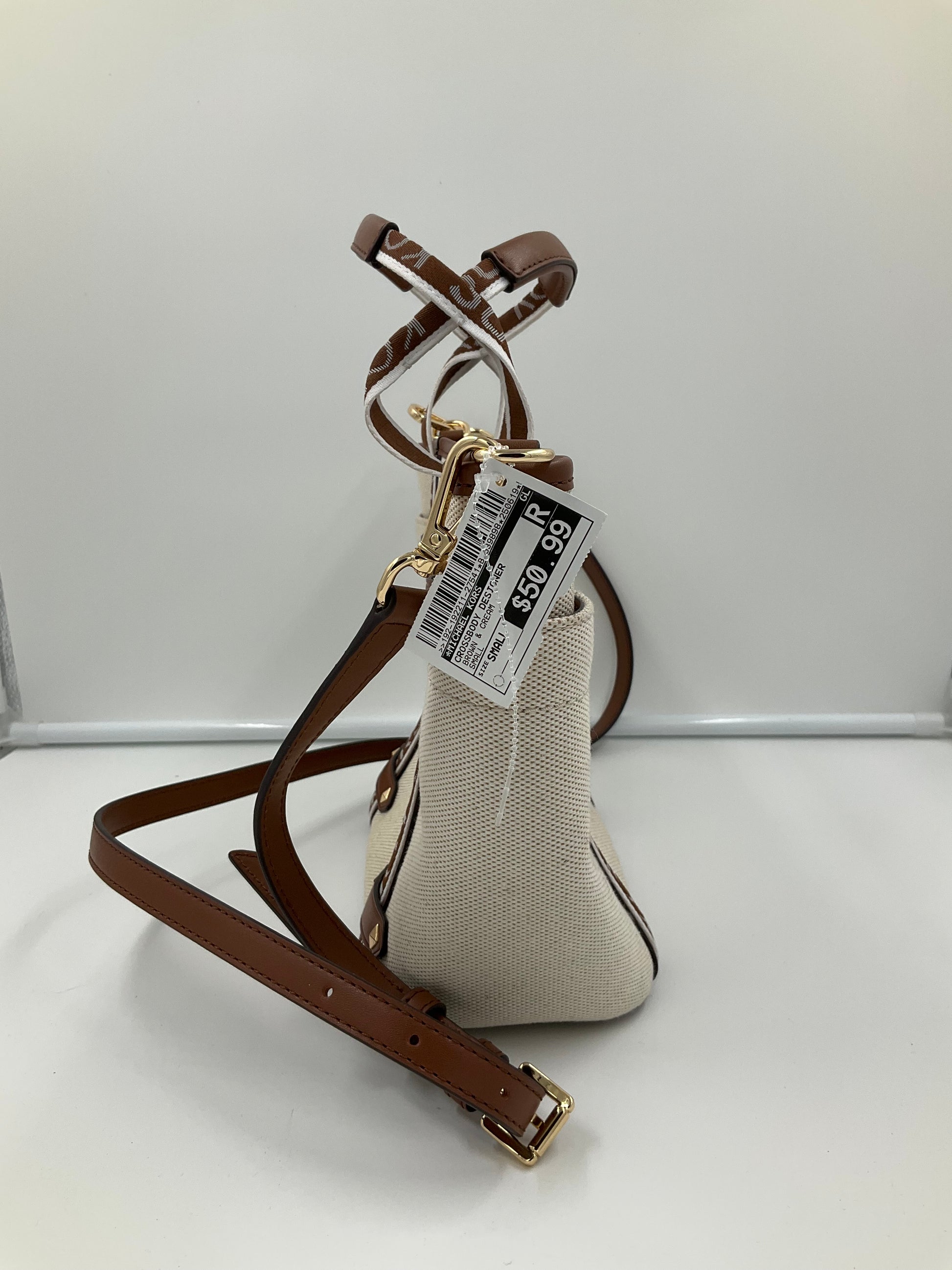Crossbody Designer By Michael Kors In Brown & Cream, Size:Small