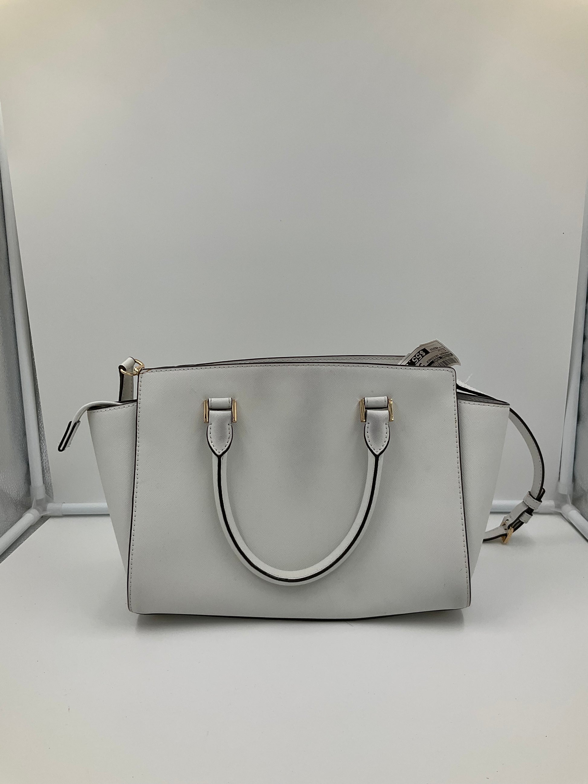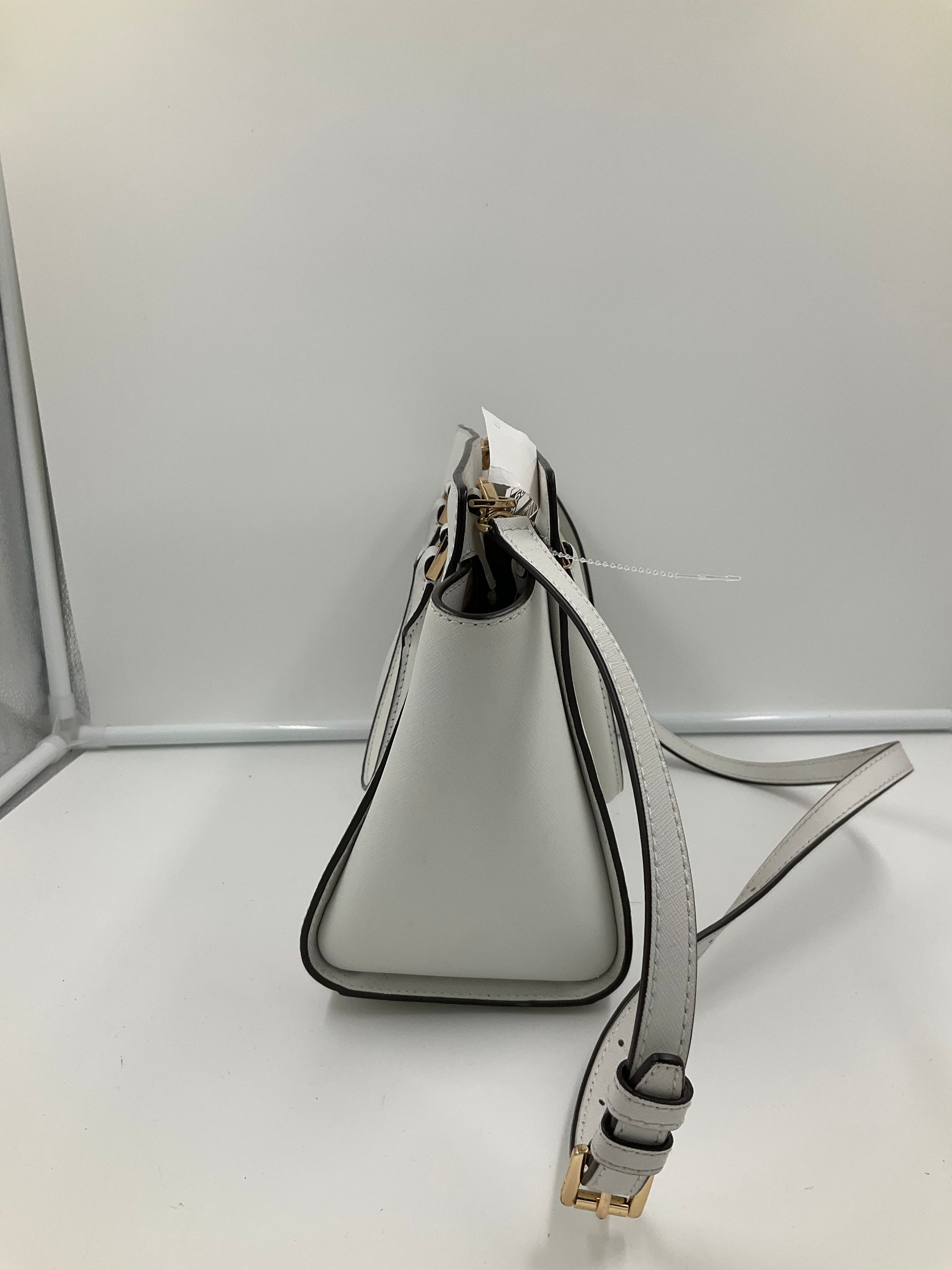 Step out in style with this chic white Michael Kors handbag. The medium size offers practicality and elegance, perfect for any occasion.